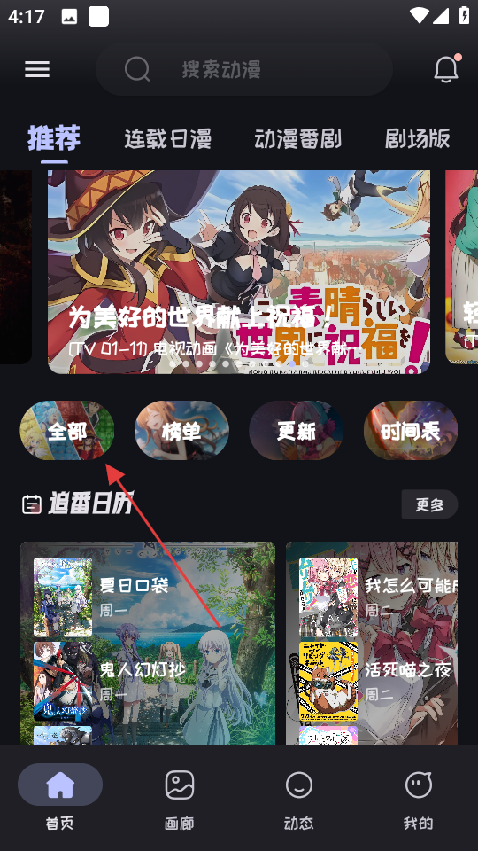1、在动漫类应用首页,点击全部,进入动漫筛选目录页面。