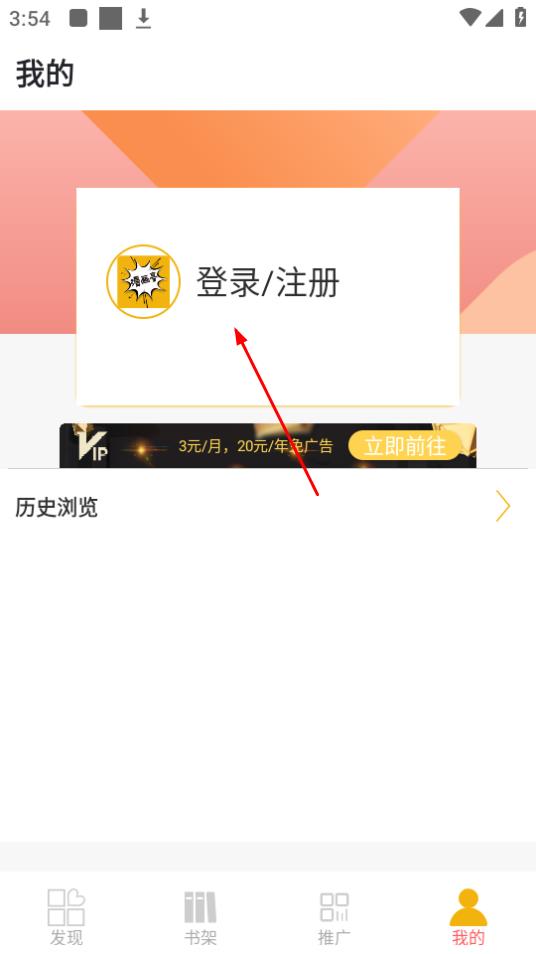 2、在个人页面点击登录注册,进入登录注册操作页面。