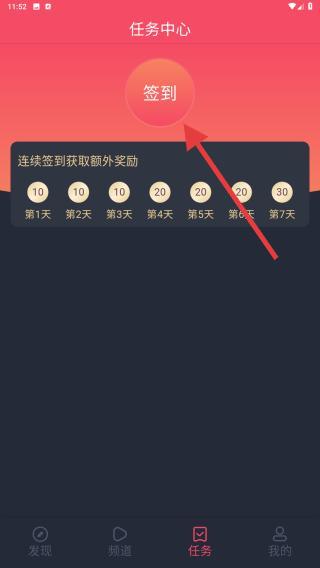 2、在任务中心内可以进行签到,连续签到可以获取额外的奖励,越到后面奖励就越丰富。