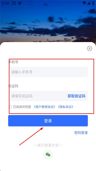 3、在登录界面输入信息,勾选协议后点击登录即可完成注册登录。