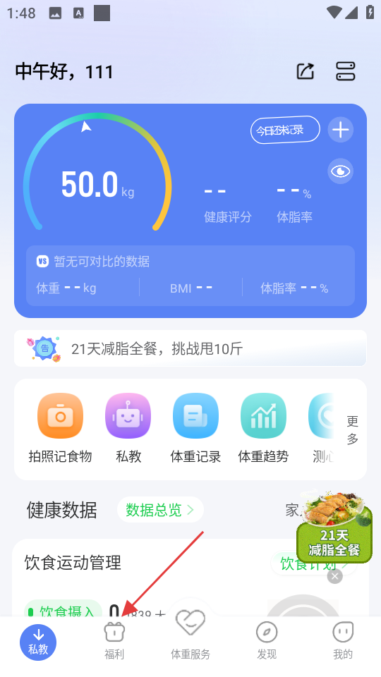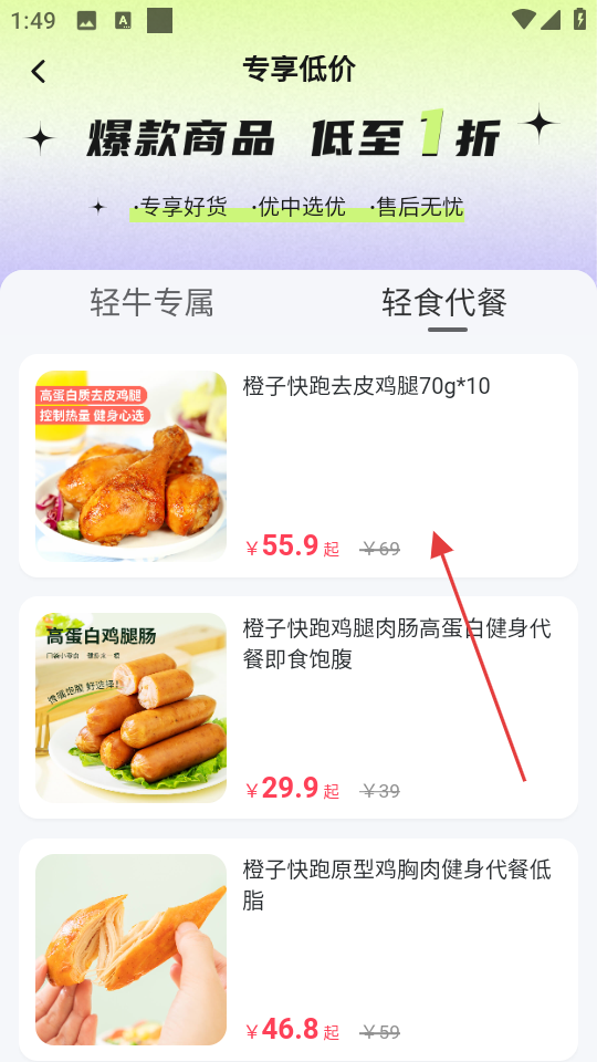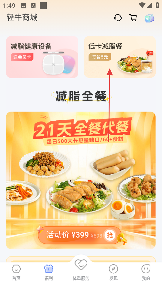2、进入轻牛商城后,点击低卡减脂餐区域。
