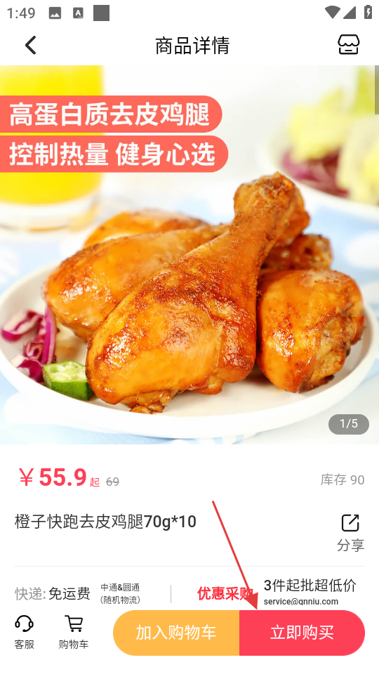 4、进入商品详情页后,点击立即购买即可等待食用此食物。
