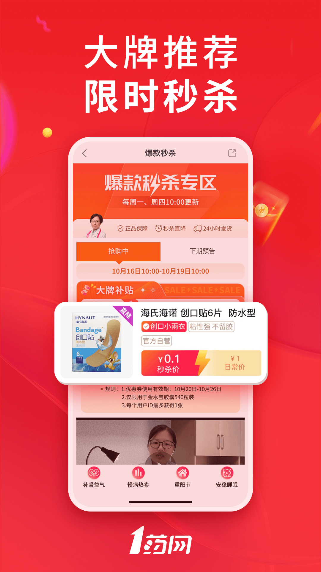 1、健康嗨购低价狂欢!爆款0.1元限时秒杀,50元大额神券限量抢
