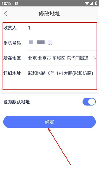 5、编辑收货人、手机号码等信息后,点击确定。