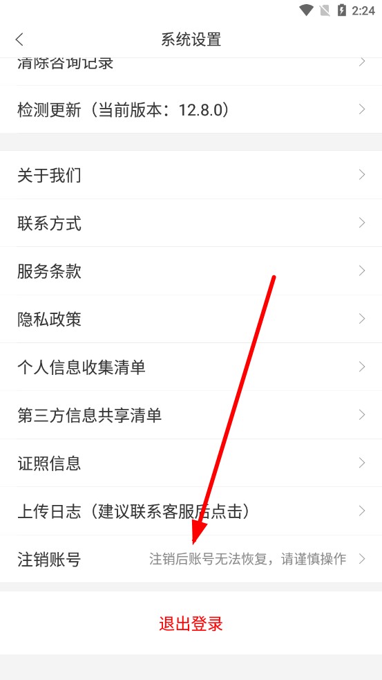 2、在系统设置页面中,找到并点击注销账号选项。