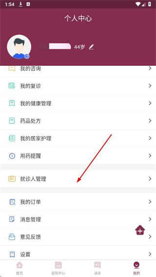 3、在就诊人管理页面,点击+添加就诊人按钮。