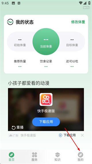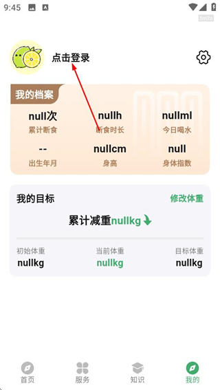 1、在人人轻断食首页,点击底部的我的选项,进入个人中心页面。