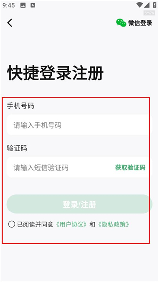 3、在登录页面,填写信息并勾选协议后,点击登录完成账号登录。