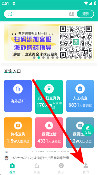 1、打开掌上药店,点击底部我的,进入个人页面。