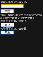 2. 点击“注册”后约15秒(不必等待系统回复短信),请在界面的编辑框中输入您的手机号码,并点击“确定”按钮,正常情况下即弹出以下界面,