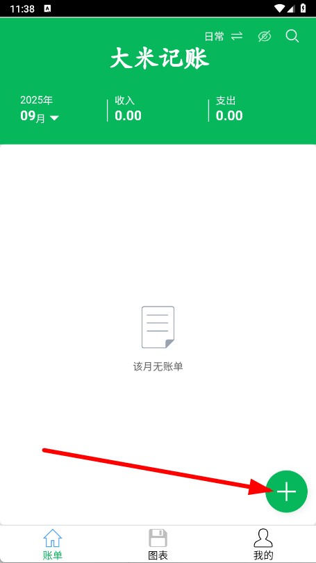 3、在账单页面,点击右下角绿色+按钮。