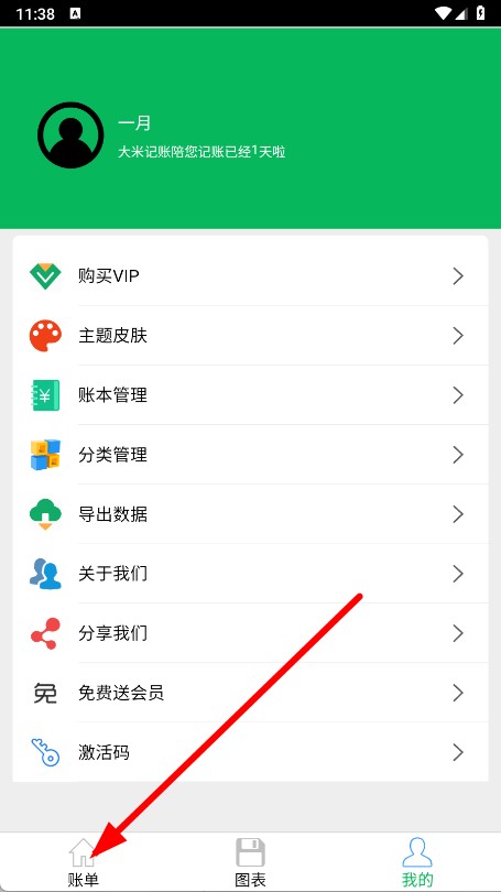 2、进入APP后,点击底部账单选项。