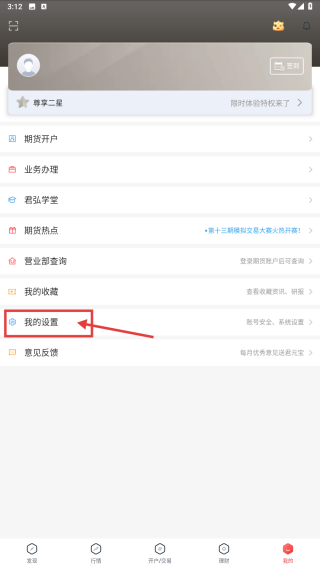 1、打开期货投资类应用,点击底部我的选项,进入个人中心页面。