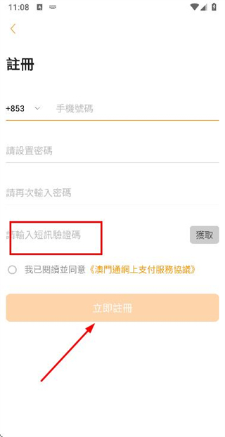 3、在注册账号页面填写验证码,勾选协议后点击立即注册完成账号注册操作。