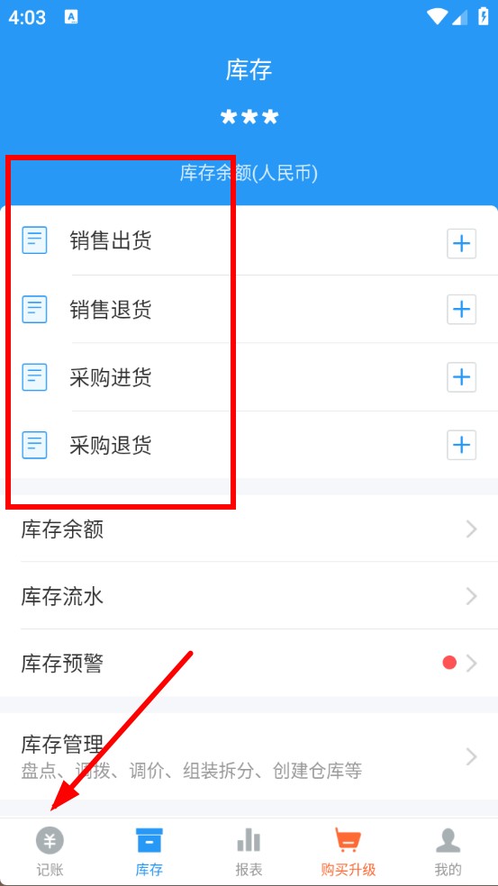 2、点击库存选项,可以对商品库存进行管理,比如添加新商品、记录商品的出入库情况等。