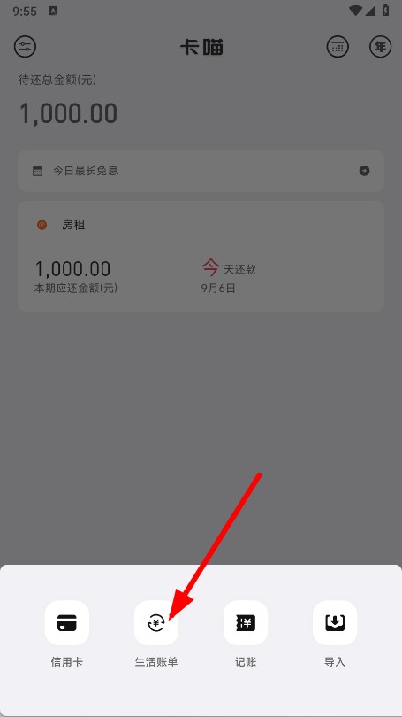 卡喵APP怎么添加生活账单