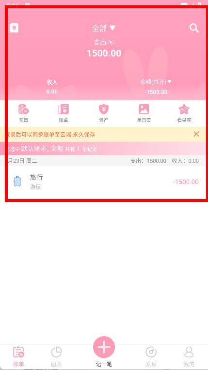 4、保存后可在账单页面查看该笔旅行支出记录。