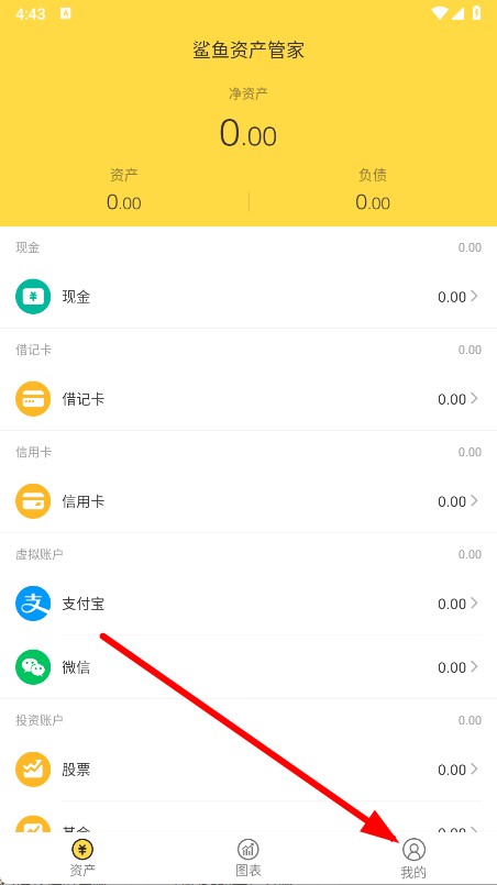 1、打开鲨鱼资产管家APP,点击底部我的选项,进入个人中心页面。