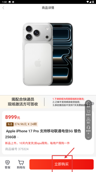 3、在商品页,点击Apple-iPhone-17-Pro条目,进入商品详情页。