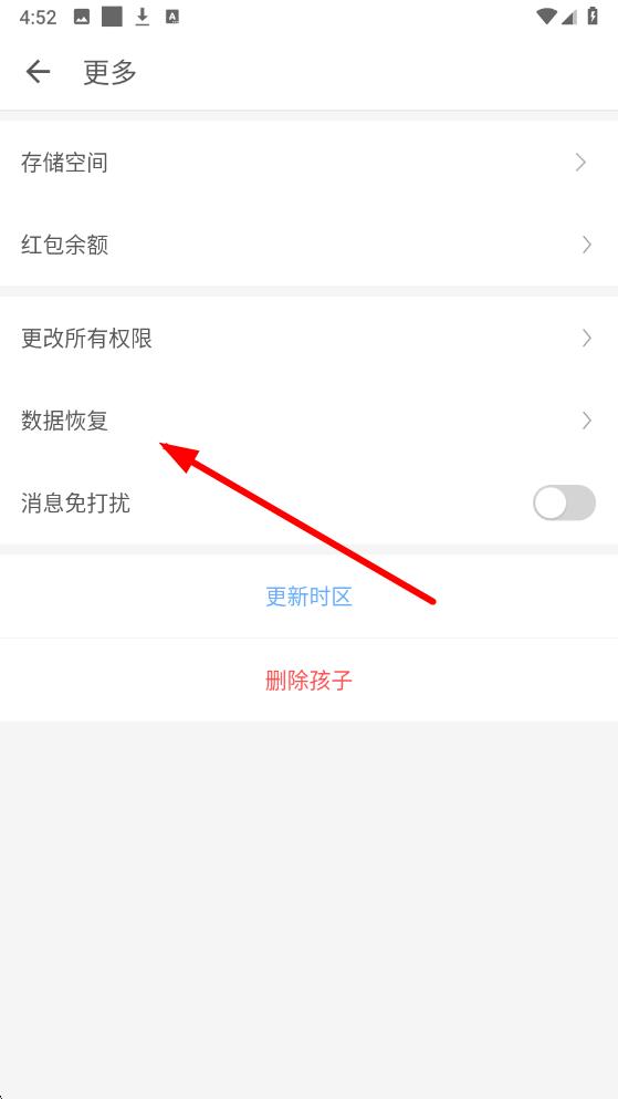 3、点击更多选项进入相关页面后找到数据恢复选项,点击该选项按照页面提示操作即可尝试恢复数据。