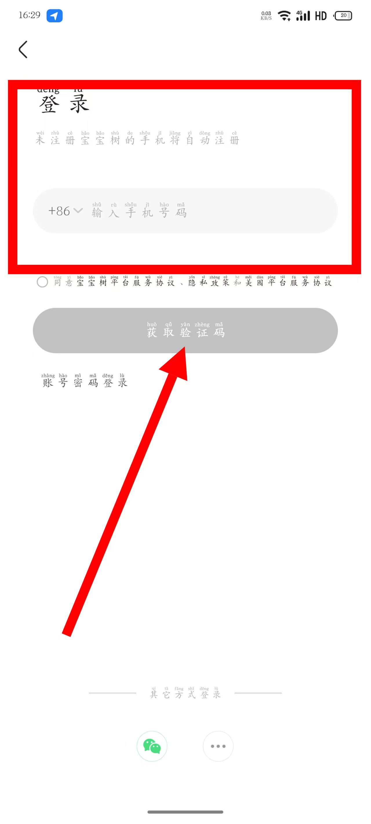 4、在对应页面,输入收到的验证码完成登录或注册。