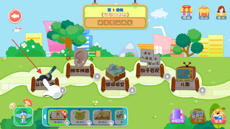 1、选择适配课程:根据儿童年龄与现有认知水平,在app内选择对应阶段的认字课程,确保课程难度与儿童能力匹配,开启针对性学习。