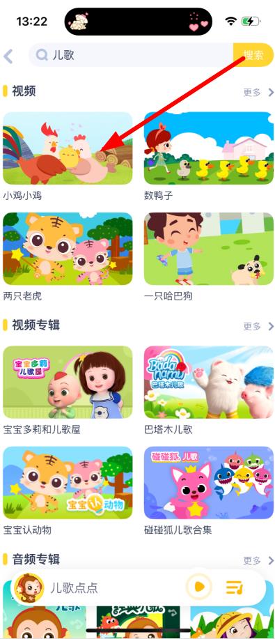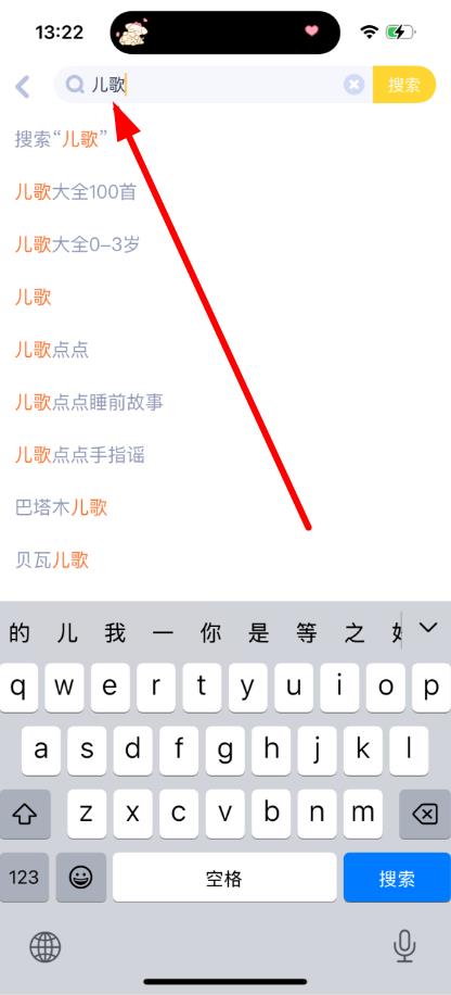 2、在搜索栏中输入想查找儿歌的关键词,如“儿歌”。