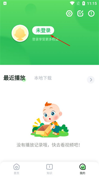 3、在个人中心页面找到未登录区域,点击该区域触发登录界面的显示。