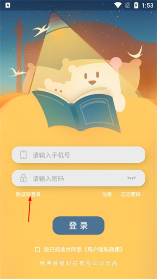 2、进入应用后,在登录页面找到验证码登录选项,点击该选项切换到验证码登录界面。