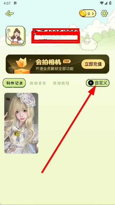 2、进入个人页面后,点击自定义按钮,进入模板自定义页面。