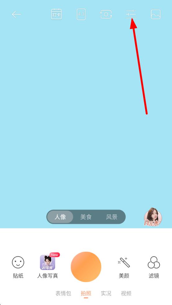 2、在拍摄界面中,点击屏幕上方类似三条横线叠加的设置按钮,展开拍摄设置选项。
