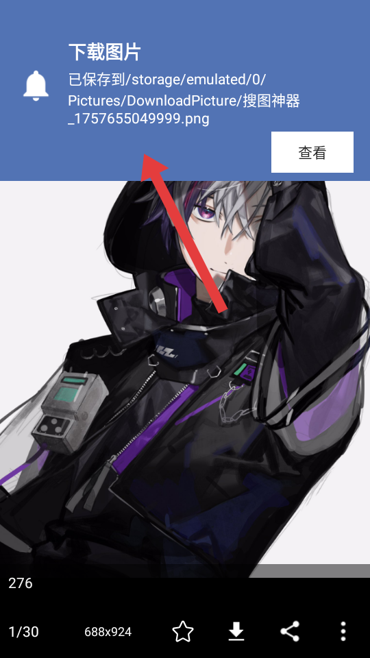 3、在图片详情的页面,需要点击底部的下载图标,启动图片下载。