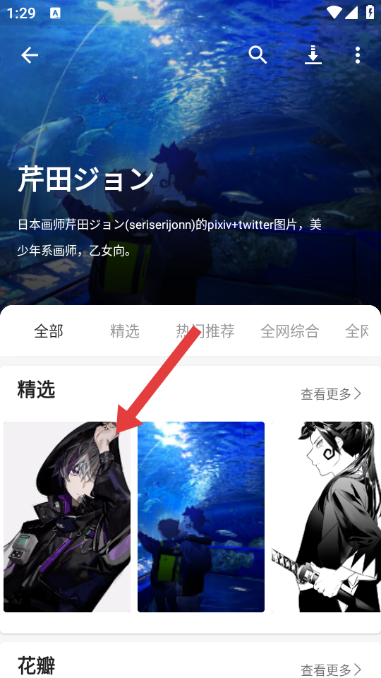 2、在图片分类展示页面,点击要保存的具体图片,进入图片详情页面。