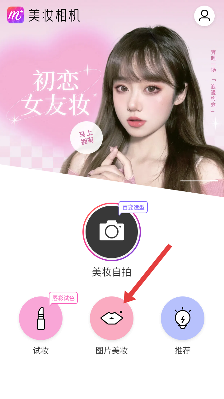 1、打开美妆相机,在首页点击图片美妆按钮,进入选择照片界面。