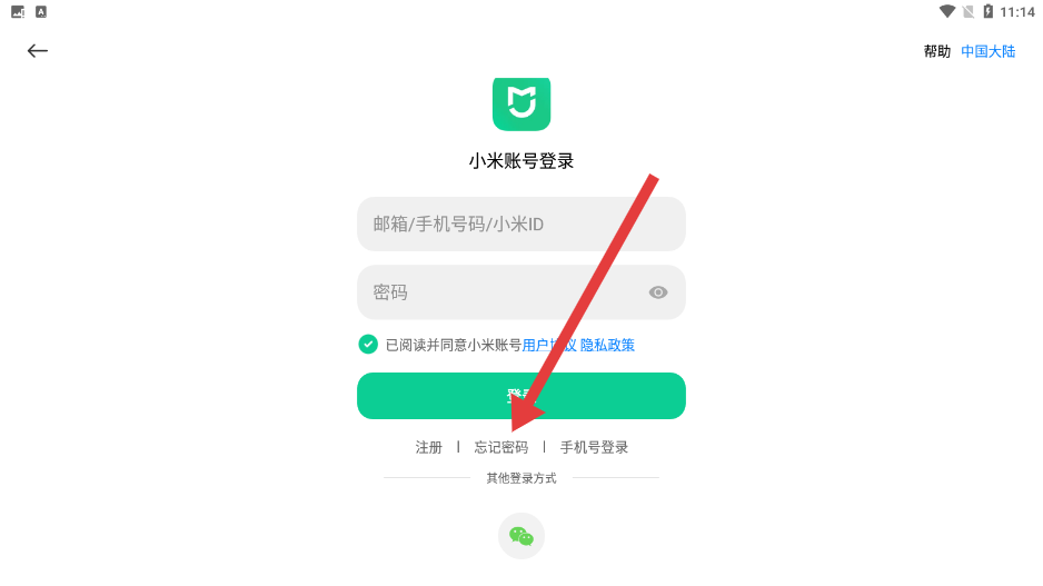 2、成功切换到账号密码登录页面,若忘记密码可以点击下方的忘记密码按钮。