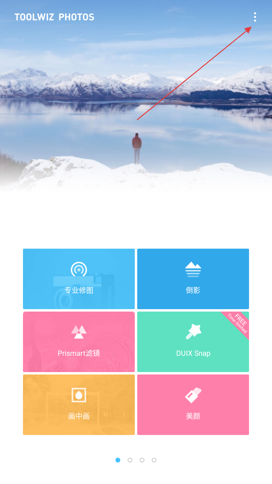1、打开Toolwiz Photos应用,点击界面右上角的三点图标,弹出功能菜单。