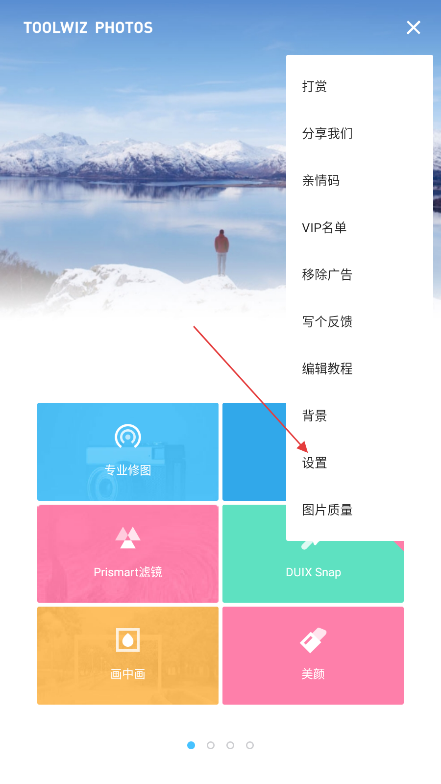 2、在功能菜单中,找到设置选项并点击,进入设置页面。
