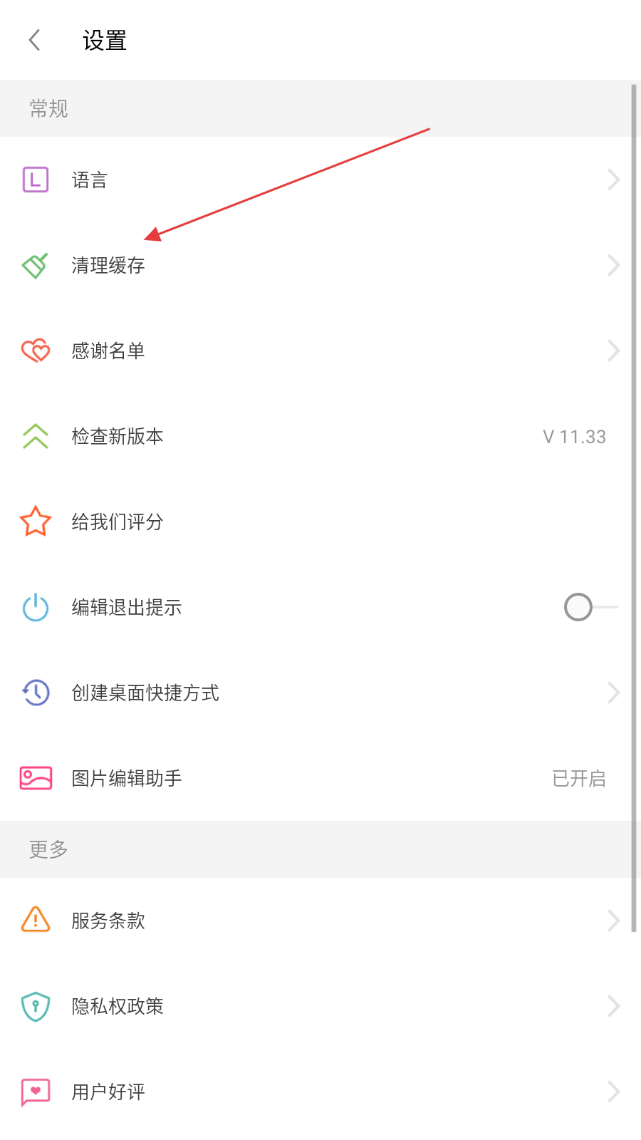 3、在设置页面的常规板块里,点击清理缓存选项,进入清理缓存界面。