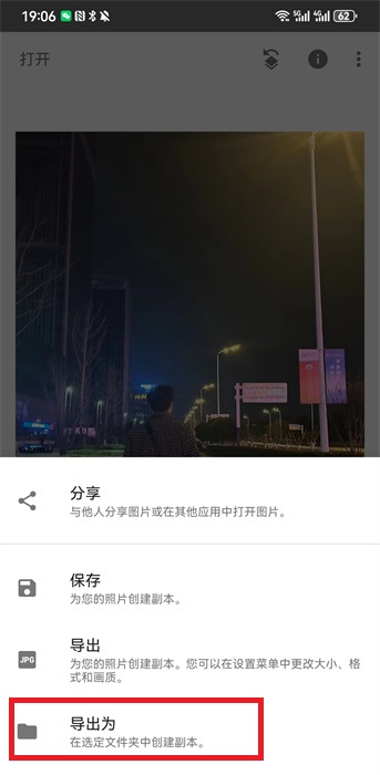 4、在导出界面中,用户需要点击其中的【导出为】就可以保存到手机上,不覆盖原图。