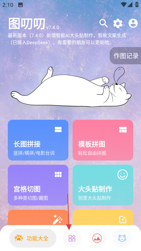 1、功能类型丰富:涵盖宫格切图长图拼接图片压缩等多种实用功能,还支持台词拼接图片转文字网页转图片,满足在图片处理上的多样需求,无需依赖多个软件。