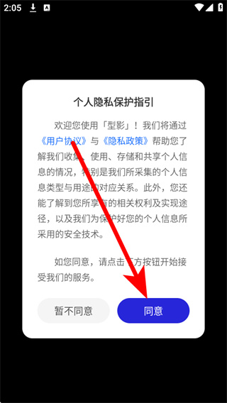 1、打开型影,在弹窗中点击同意,进入主界面。