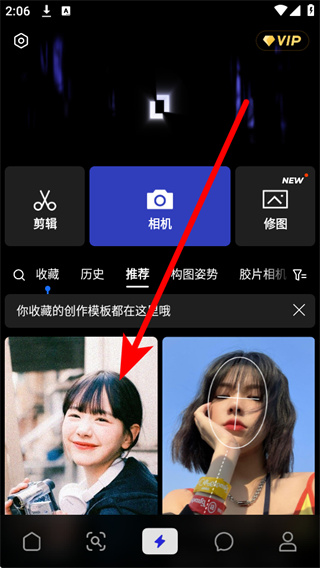 3、在创作界面中,选中目标相机模板,进入该模板的详情页面。