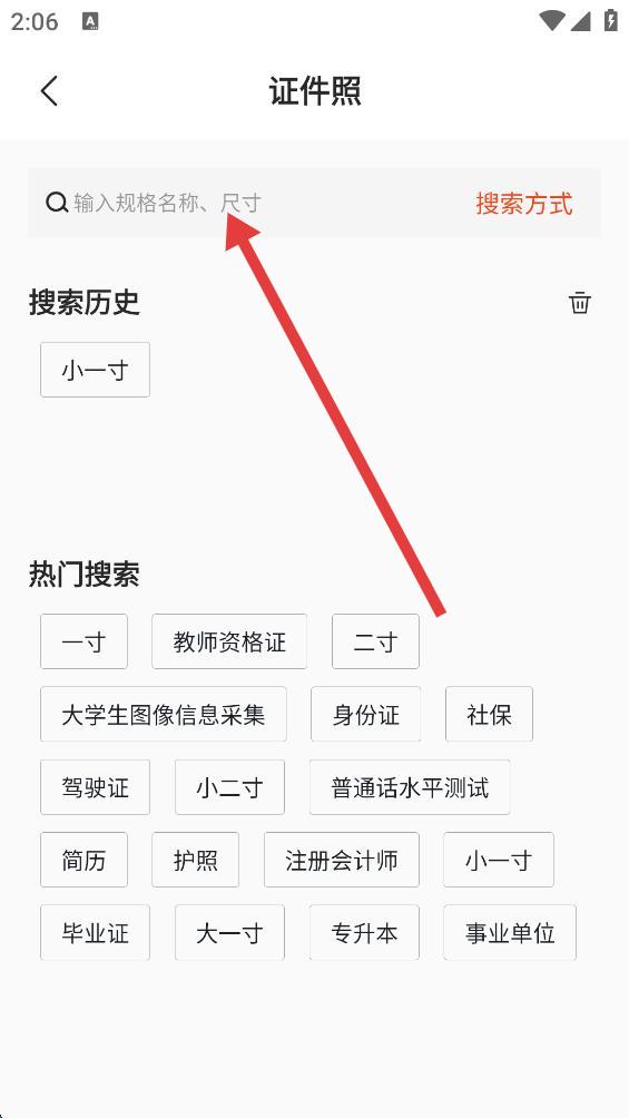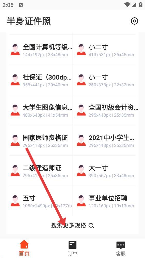 2、点击搜索更多规格,进入证件照搜索页面。