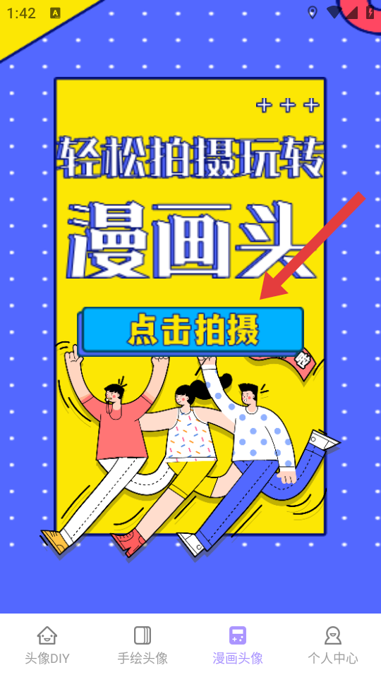 2、在漫画头像制作引导页,点击点击拍摄按钮,进入拍摄照片界面。