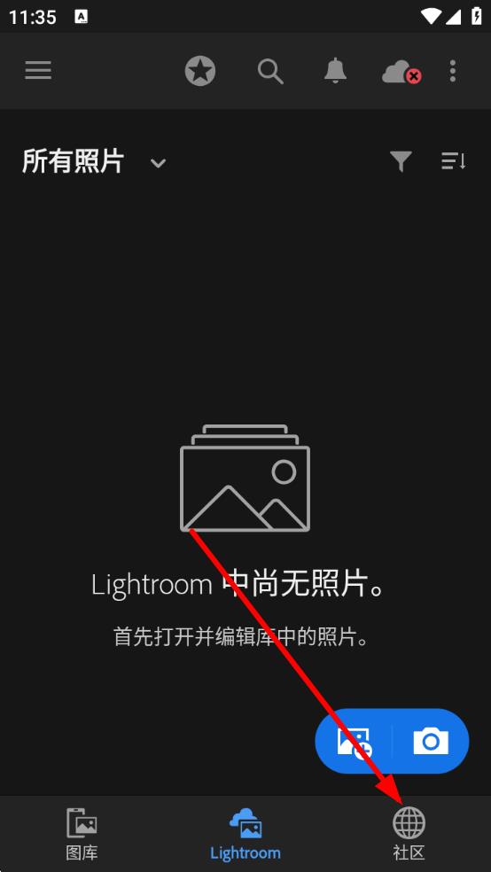 1、打开lr软件,点击底部导航栏中的社区图标进入社区界面。