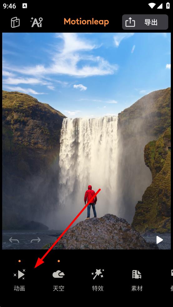 1、在Motionleap中导入照片后,点击底部菜单栏里的动画选项,进入动画编辑界面。