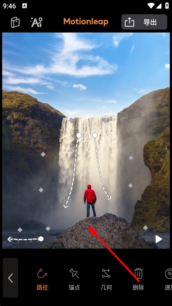 3、根据需求调整路径的锚点、几何形状等参数,设置完成后还可点击播放按钮预览效果,满意后点击导出,选择合适格式保存编辑后的视频。