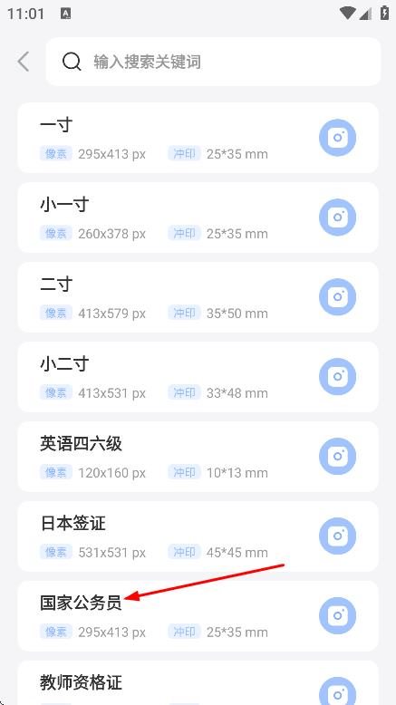 2、随后选择所需的证件照类型,进入拍摄须知页面。