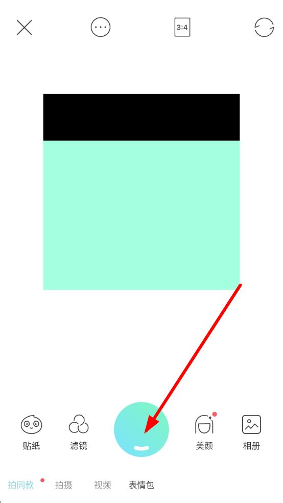 2、在拍摄页,切换到底部表情包选项,进入表情包专属拍摄模式,适配创意需求。