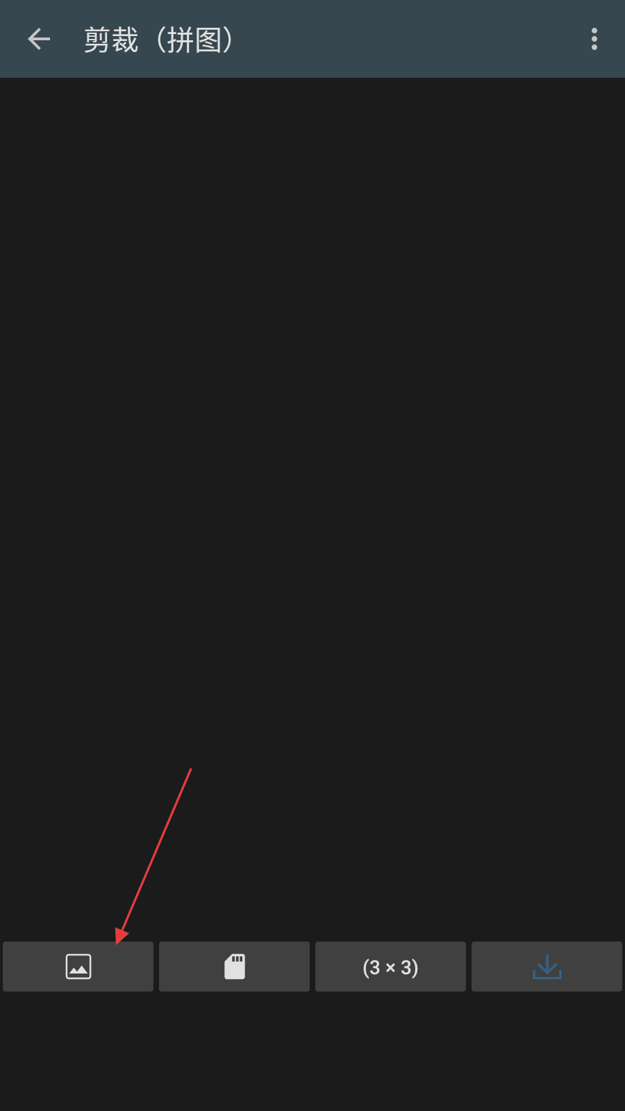 3、在剪裁拼图界面,点击左下角图片图标按钮选择素材图片。